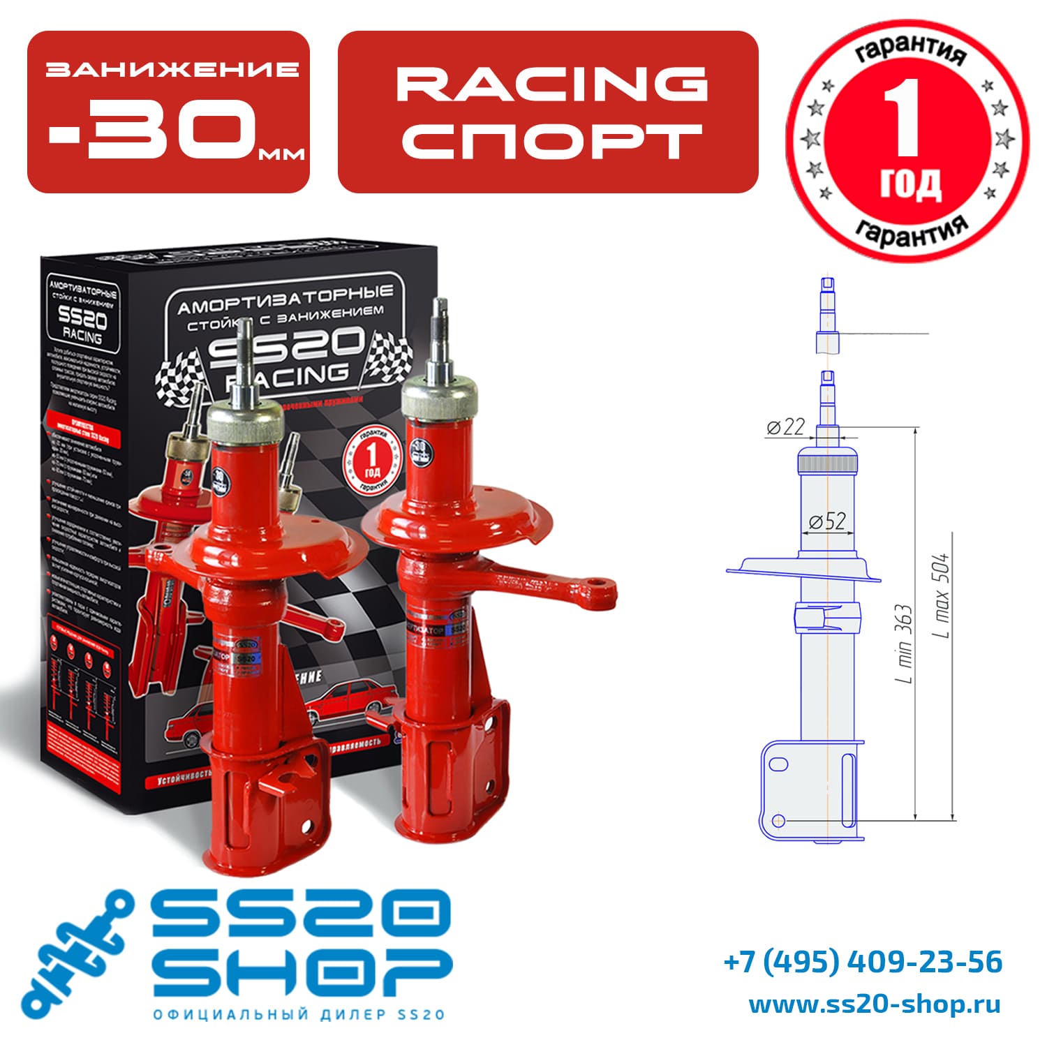 Амортизаторы серии «SS20 Racing» имеют следующие конструктивные особенности: